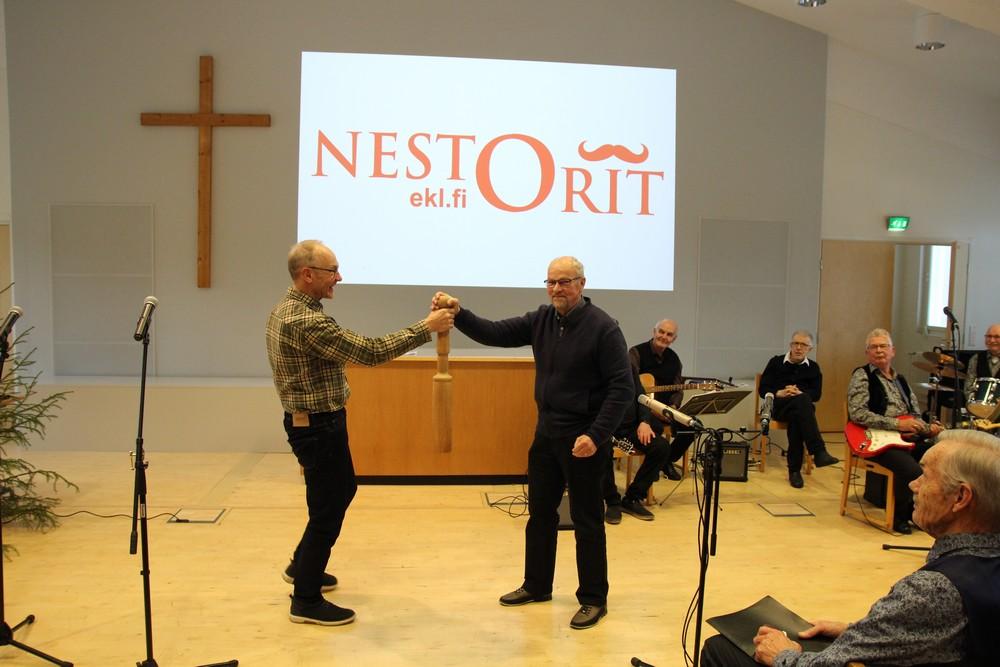Nestorit-tapahtuman juhlaisäntä ja juontajana toimi Kari Löfbacka. Hänen apunaan häärivät järjestävän yhdistyksen Nestoreiden puuhamiehet Juha Kippola ja Ilkka Harmaala sekä joukko muita yhdistyksen aktiivisia Nestoreita. He ottivat vieraat vastaan ja ohjasivat heidät tulokahveille. Pitkänmatkalaisia ajatellen kahvitus ja tarjottavat oli laadittu erityisen runsaiksi ja ravitseviksi.